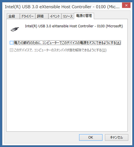 電源管理のタブの「電源の節約のために~」を外します。