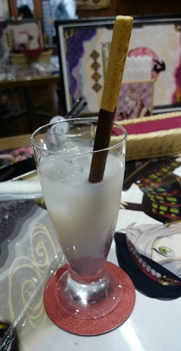 よく見るとブドウゼリーが入っています。刀を模様したポッキーもついてきます。